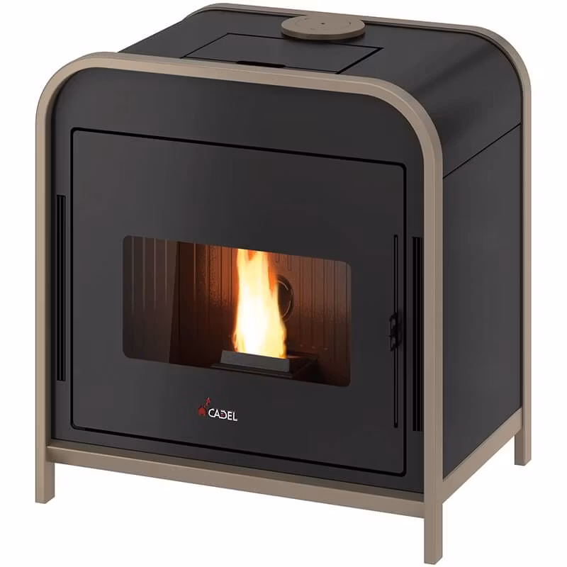 Cadel FRAME³ pelletskamin är svår att ignorera med dess låga och böjda linjer. Denna kamin integreras harmoniskt i både moderna och rustika miljöer, och erbjuder möjligheten att värma upp flera rum med sin valfria kanalsats.